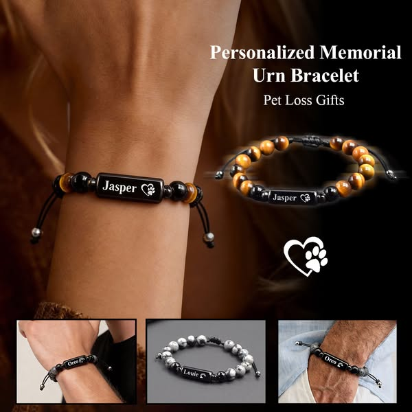 Cremation jewelry collection goes beyond a simple accessory; it becomes a treasured memorial bracelet, preserving the essence of your pets (dog or cat) or loved one close to your heart. The ashes bracelet comfort while allowing you to carry precious memories wherever you go.