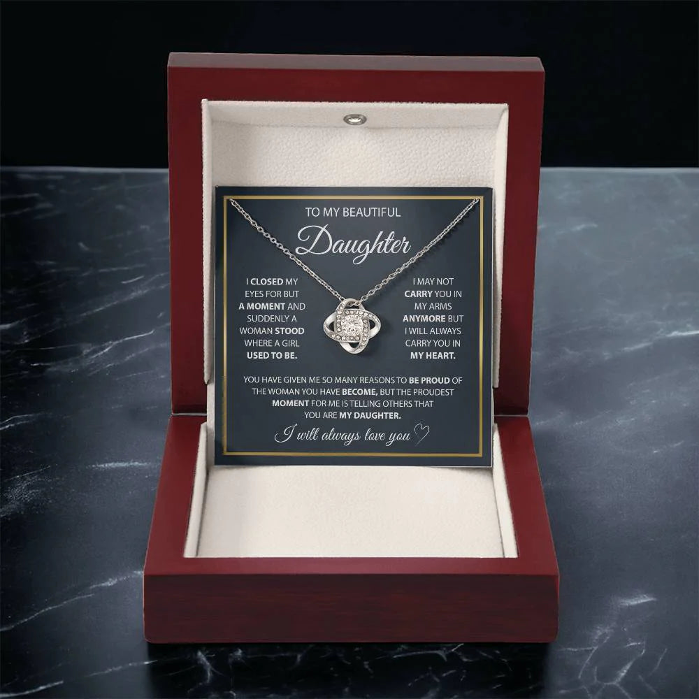 Show your daughter how much she means to you with a necklace that says it all. This isn't just jewelry - it's a lasting keepsake and a powerful reminder ofyour love, wrapped in a heartfelt message she'll cherish forever.
